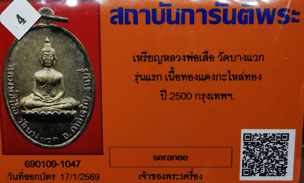 หรียญหลวงพ่อเสือ วัดบางแวก รุ่นแรก เนื้อทองแดงกะไหล่ทอง ห่วงเดิม ปี2500 จ.กรุงเทพฯ + บัตรG-pra สภาพสวยเดิมค่ะ สภาพตามรูปทุกประการค่ะ