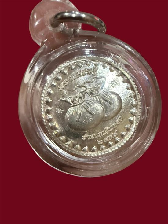 เหรียญขวัญถุง หลวงพ่อบุญมา วัดถ้ำโพงพาง "#เนื้อเงินหน้า กากทองคำ" พร้อมเลี่ยม