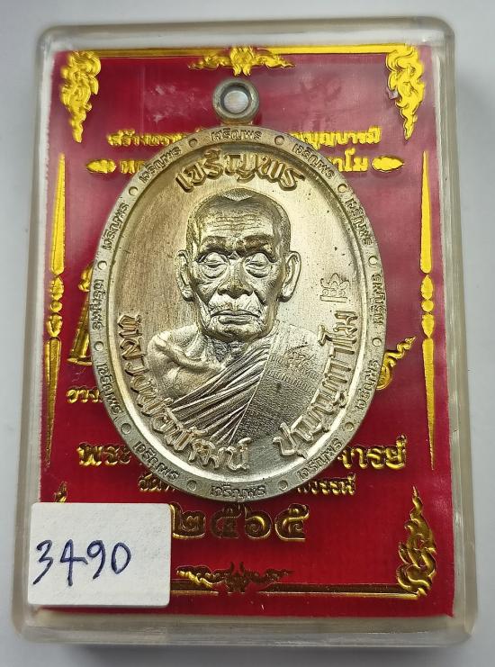 เหรียญเจริญบน 65 ขอบเจริญพร หลวงพ่อพัฒน์ ปุญฺญกาโม วัดห้วยด้วน เนื้อพรายเงิน เบอร์ 3490 พร้อมกล่องครับ