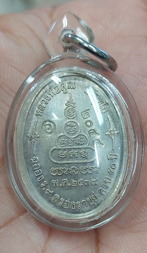 หลวงพ่อคูณรุ่นเพื่อชีวิตเนื้อเงินหน้าทองคำ หมายเลข2044 ปี2539 หูเหรียญถูกตัด(พิจารณาก่อนเคาะ)เลี่ยมพร้อมใช้ รับประกันแท้ตลอดชีพ