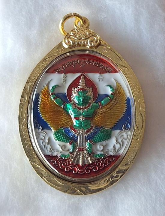 หลวงปู่ศิลา วัดโพธิ์ศรีสะอาด เหรียญพญาครุฑ รุ่นยอดบารมี ลังนำฤกษ์ เนื้ออัลปาก้า ลงยาลายธงชาติ เลี่ยมกรอบชุบน้ำทอง No.30