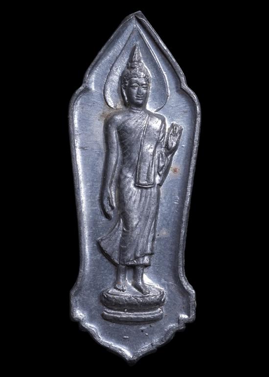เหรียญพระลีลา25พุทธศตวรรษ เนื้อชิน พิมพ์สังฆาฏิจุด แดงเคาะแรก