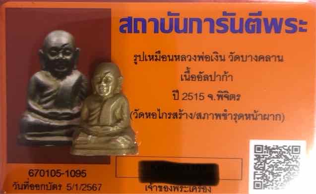 รูปเหมือนหลวงพ่อเงิน วัดบางคลาน เนื้ออัลปาก้า ปี2515 จ.พิจิตร (วัดหอไกร) พร้อมบัตรรับรอง