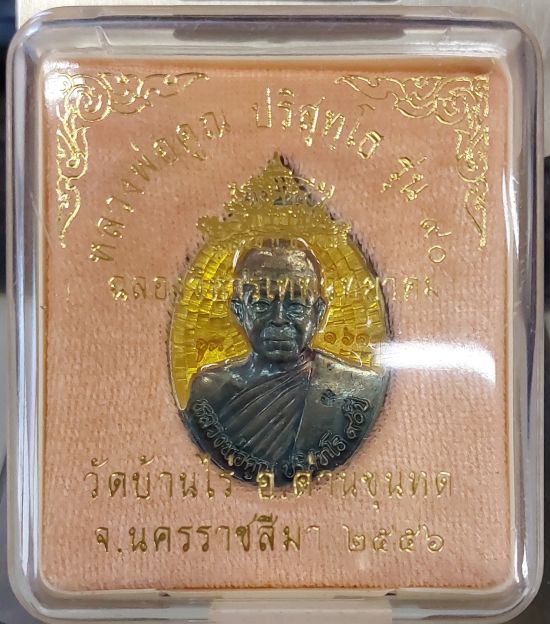 เคาะเดียวแดง เหรียญหลวงพ่อคูณ ปริสุทโธ รุ่น ฉลองวิหารเทพ ออกวัดบ้านไร่ ปี 56 เนื้อ เงินลงยาเหลือง หมายเลข 1619 |