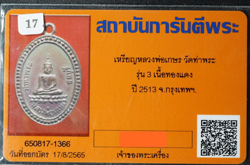 **120** เหรียญหลวงพ่อเกษร วัดท่าพระ รุ่น 3 เนื้อทองแดง ปี 2513