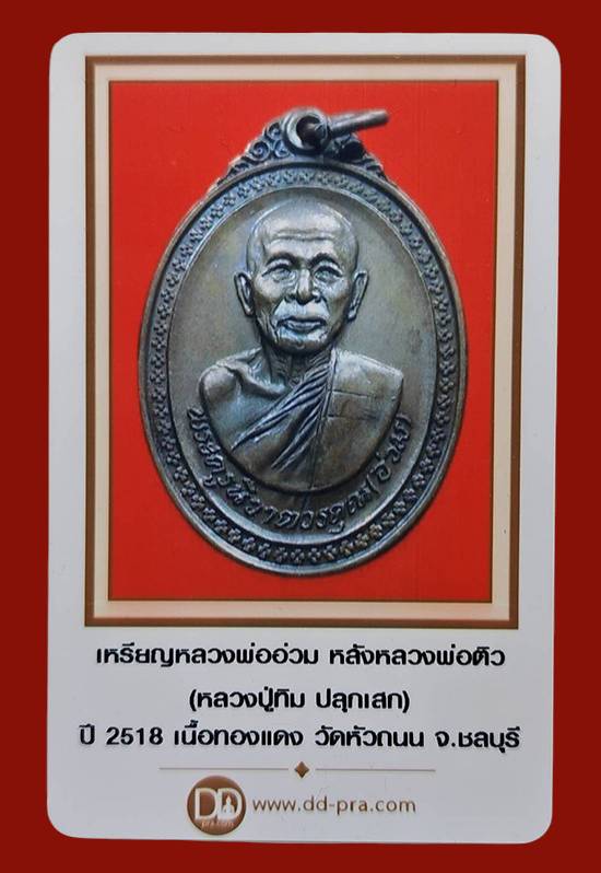 เหรียญหลวงพ่ออ่วม วัดหัวถนน พิมพ์หลังหลวงพ่อติ้ว เนื้อทองแดง ปี2518 จ.ชลบุรี หลวงปู่ทิมปลุกเสก...วัดใจ120บาท |