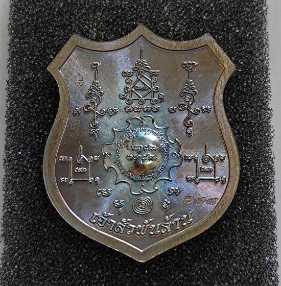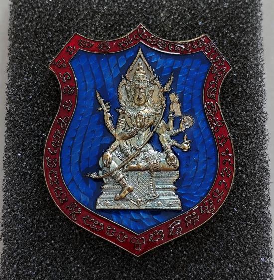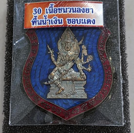 เหรียญท้าวมหาพรหม รุ่นเจ้าสัวพันล้าน(บอย ท่าพระจันทร์) เนื้อชนวนลงยาพื้นน้ำเงินขอบเเดง เลขโค๊ต ๕๗๗ พร้อมกล่องเดิม