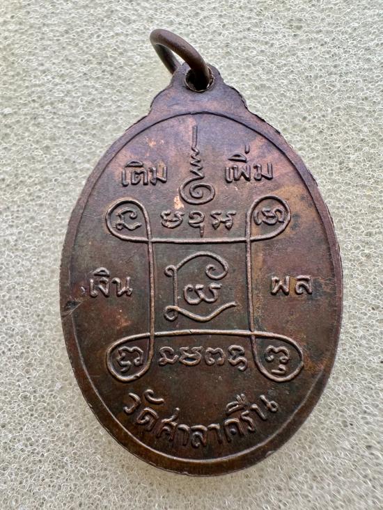 เหรียญรูปไข่ หลวงพ่อสี่เข่า วัดศาลาครืน รุ่น เติมเงินเพิ่มผล ปี 2515 หลวงปู่โต๊ะปลุกเสก เนื้อทองแดง |