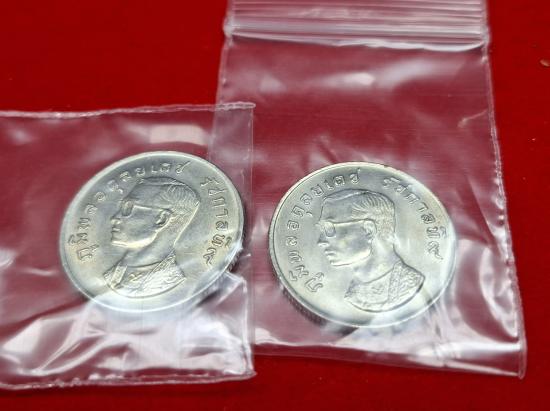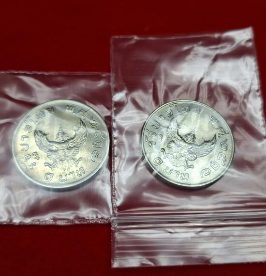 เหรียญ 1บาท หลังครุฑ ปี2517 สภาพไม่ผานใช้ 2เหรียญ เคาะเดียว