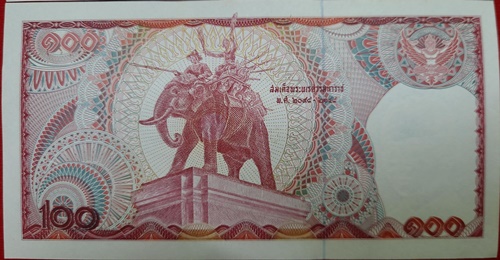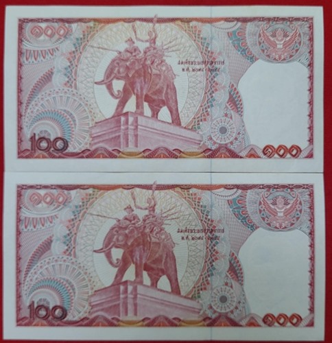 ธนบัตร 100 บาท ร.9 แบบ 12 หลังช้างแดง เลขเรียง 2 ฉบับ ลายเซ็นหายาก พิมพ์น้อยมาก สภาพ UNC ไม่มีรอยพับ