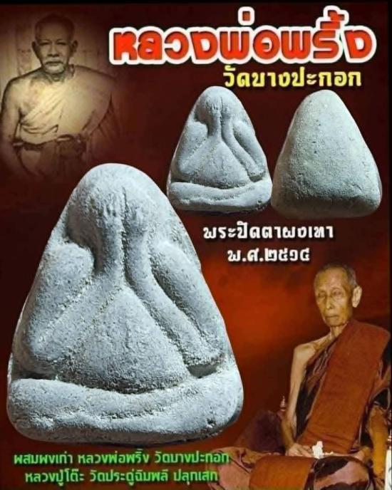 พระปิดตาเนื้อผงเทา หลวงพ่อพริ้ง วัดบางปะกอก เนื้อผงผสมผงเก่า หลวงปู่โต๊ะ ปลุกเสก ปี2514 (1)