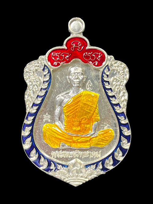 ''วัดใจ'' เหรียญเสมา รุ่นเจริญพรไตรมาส หลวงพ่อคูณ ปริสุทโธ วัดบ้านไร่ 2557 เนื้อเงินปะฉลุ 3 ชิ้น ลงยา 3 สี พื้นเงิน ขอบเงิน องค์เงิน หมายเลข 4