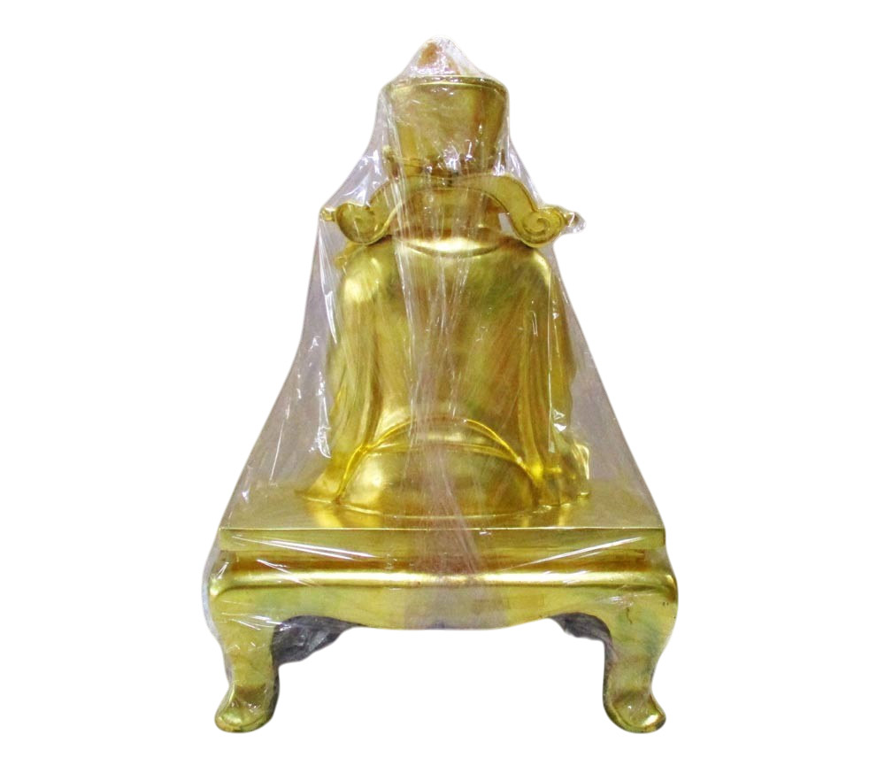 เทพเจ้าแห่งโชคลาภ ไช้ซิงเอี้ย วัดพระพุทธบาทราชวรมหาวิหาร จ.ส ระบุรี พ.ศ.2547 เนื้อโลหะผสมปิดทองคำเปลว ขนาดฐานกว้าง 16 นิ้ ว สูงรวมฐาน 25 นิ้ว