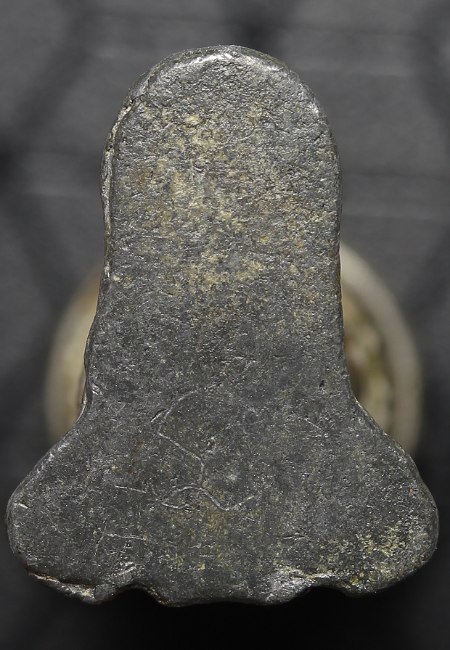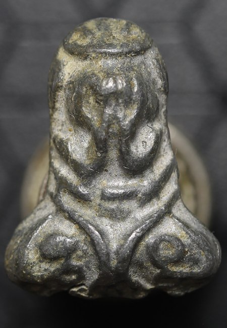 พระปิดตานะหัวเข่า เนื้อตะกั่ว เจ้าคุณผล วัดหนัง กรุงเทพฯ ด้านหลังจารลายมือ