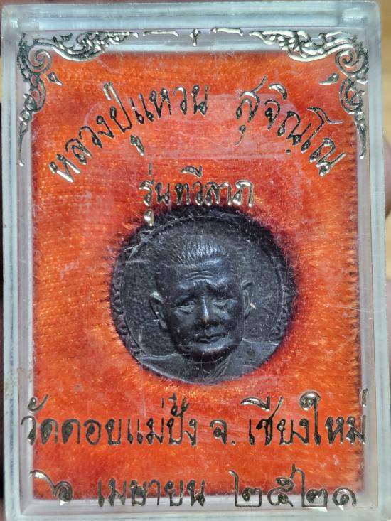 เหรียญหล่อทวีลาภ เนื้อนวะ หลวงปู่แหวน วัดดอยแม่ปั๋ง เชียงใหม่ ปี 21 |