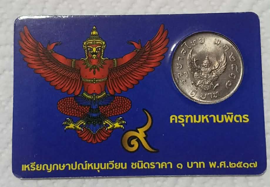 เหรียญ 1 บาท หลังพญาครุฑ เหรียญบาทประสบการณ์ พกติดตัวไว้เป็นมงคล เหรียญสภาพไม่ผ่านการใช้งาน พร้อมการ์ดสีน้ำเงิน จำนวน 1 เหรียญ ครับ