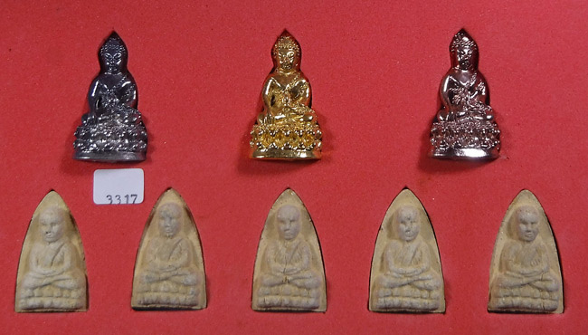 แดงที่เคาะแรก !!! พระชุด 8 องค์ (ฝังแผ่นโค๊ตเงิน+หมายเลข) รุ่นตำหนักทอง หลวงปู่ทวด หลวงพ่อทอง วัดป่ากอ จ.สงขลา ปี2540 กล่องเดิม