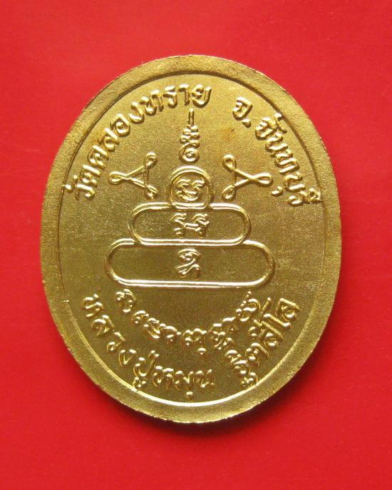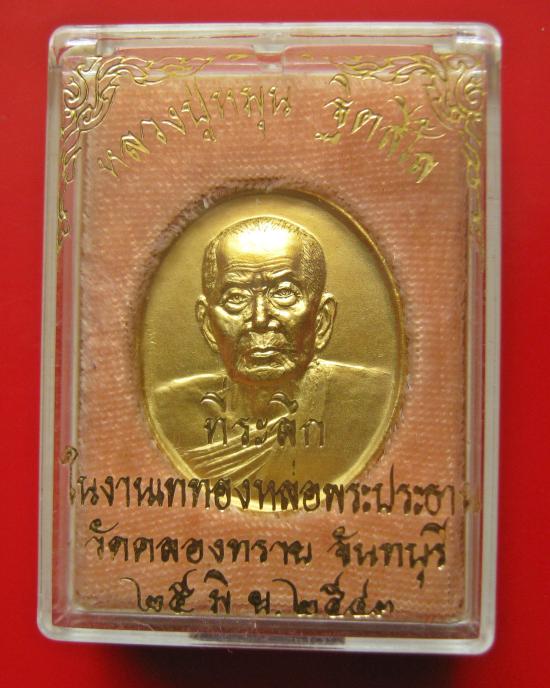 เหรียญหลวงปู่หมุน ฐิตสีโล วัดบ้านจาน เนื้อทองแดงกะไหล่ทอง ที่ระลึกในงานเททองหล่อพระประประทาน วัดคลองทราย ปี 2543 พร้อมกล่องเดิม |