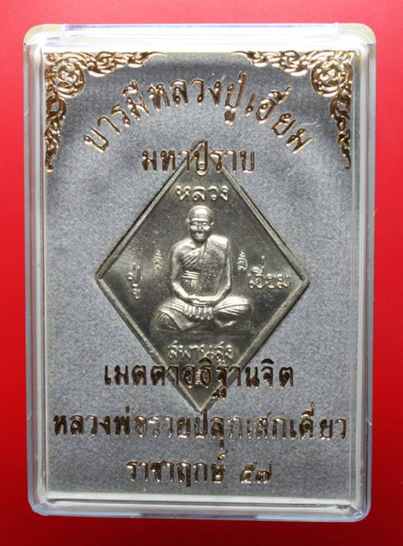 เหรียญ มหาปราบ " หลวงปู่เอี่ยม วัดสะพานสูง " ปี 2557 เนื้ออัลปาก้า หลวงพ่อรวย วัดตะโก ปลุกเสกเดี่ยว สภาพสวย กล่องเดิม