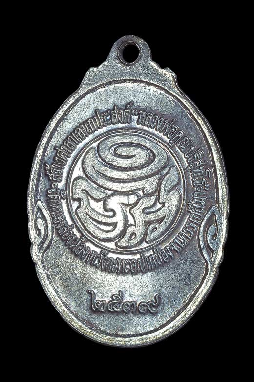 เหรียญรูปไข่เต็มองค์ ( หลังยันต์มะอะอุ ) สร้างศาลาเอนกประสงค์ วัดหนองสองห้อง ( กะไหล่เงิน ) พ.ศ.2539