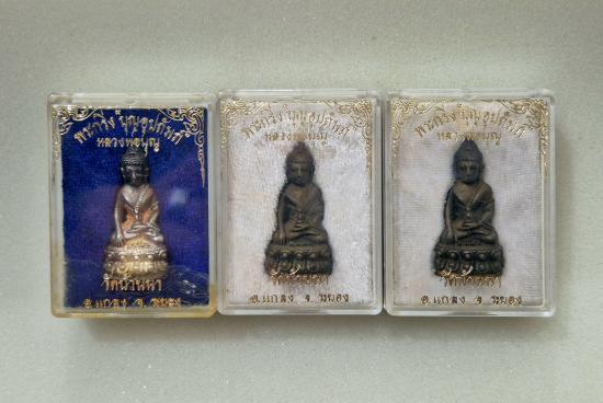 พระกริ่งบุญอุปถัมภ์ หลวงพ่อบุญ วัดบ้านนา ยกชุด 3 องค์ เนื้อเงิน 1 องค์ นวะ 2 องค์ พร้อมกล่องเดิมครับ