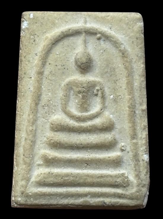 พระสมเด็จเนื้อผงด้านหลังมีรอยหมึกจางจางไม่ทราบที่