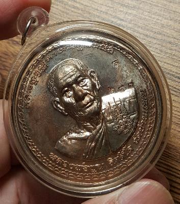 เหรียญบาตรน้ำมนต์รุ่นแรก เนื้อนวะพรายเงิน หลวงพ่อพูน วัดบ้านแพน อยุธยา เลี่ยมพลาสติกรักษาผิวไม่ผ่านการแขวนบูชา
