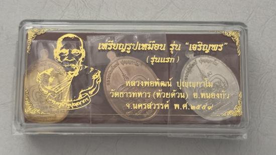 เหรียญเจริญพร รุ่นแรก หลวงพ่อพัฒน์ วัดห้วยด้วน ปี 59 ชุดกรรมการ *หมายเลข 115 * เลขสวย สภาพสวยๆ