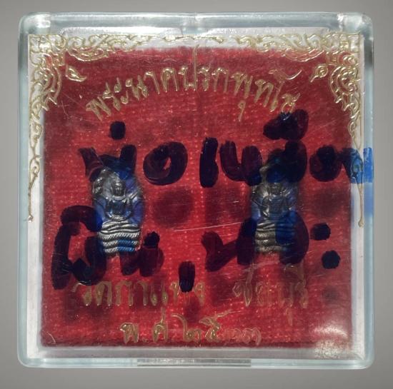 พระปรกใบมะขาม ลป.เหมือน วัดกำแพง จ.ชลบุรี เนื้อเงิน+เนื้อนวะ ปี2533 สภาพสวย กล่องเดิมๆ |