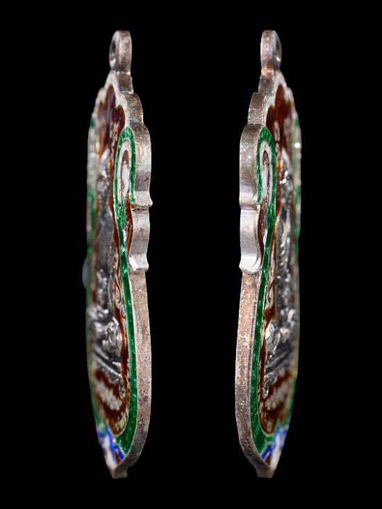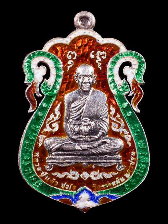 หลวงปู่แผ้ว วัดรางหมัน รุ่นเหนือดวงมหาบารมี เนื้อเงินลงยาราชาวดี ฉลุ กรรมการ No.66 ยาเต็ม จมูกโด่ง