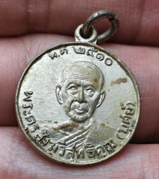เหรียญพระครูสังฆวิสุทธิคุณ(บุศย์)เนื้ออัลปาก้าที่ระลึกสร้างวิหารหลวงพ่อคล้ายวาจาสิทธิ์วัดเวฬุราชินปี 2510 ธนบุรี