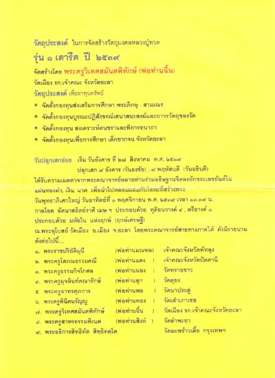 เตารีดรุ่น 1 วัดเมืองยะลา-ว้ดช้างให้ ปี39 เนื้อทองสำริด อ.จ. นอง และเกจิดัง 8 ท่าน พิธีใหญ่ เกจิดังๆหลายท่านเช่น ท่านนอง ท่านทอง ท่านฉิ้น