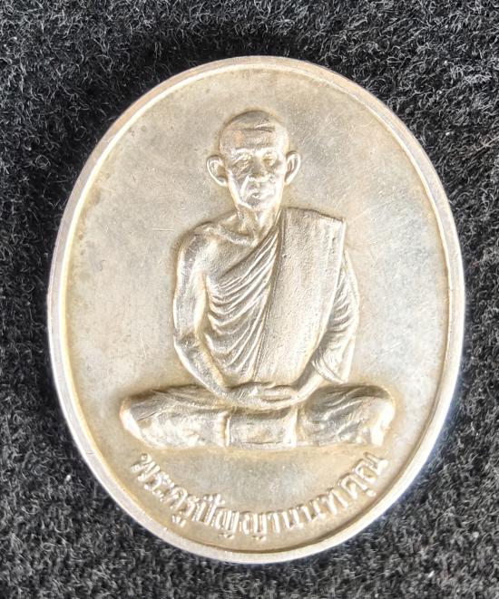 เหรียญเนื้อเงิน พระครูปัญญานนทคุณ(หลวงพ่อบาง) วัดสโมสร อ.ไทรน้อย จ.นนทบุรี สร้างน้อยหายาก