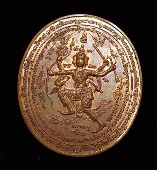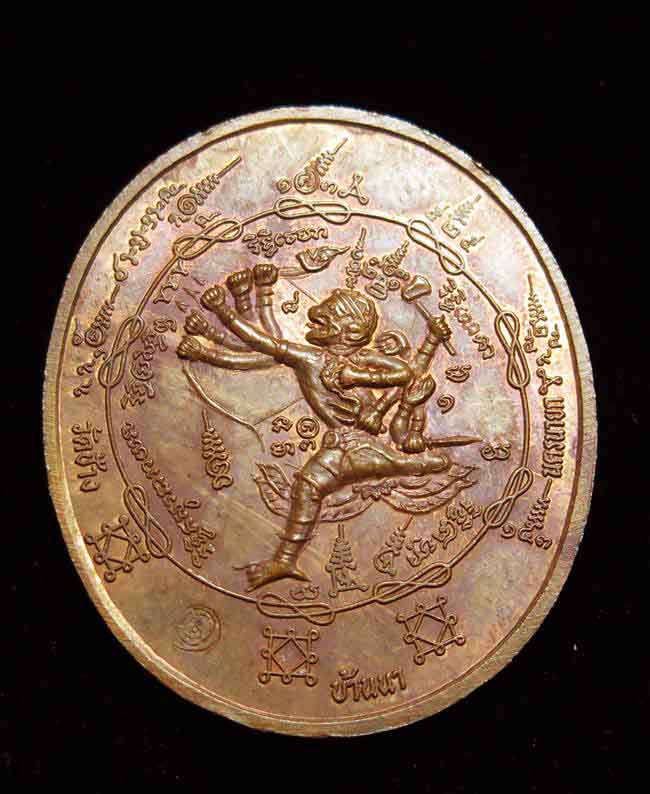 เหรียญนารายณ์หลังหนุมาน 10 กร รุ่นแรก เนื้อทองแดง พระครูธวัชภัทราภรณ์ อ.ต๊ะ อดีตเจ้าอาวาสวัดช้าง อ.บ้านนา จ.นครนายก ผู้สืบสานตำนานพระกริ่งวัดช้างอันลือลั่น