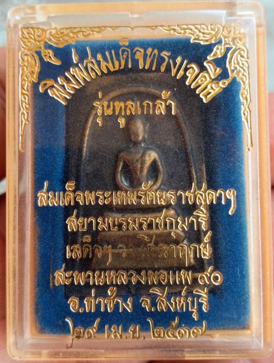 สมเด็จทรงเจดีย์ รุ่นทูลเกล้าสมเด็จพระเทพฯ เสด็จวางศิลาฤกษ์ สะพานหลวงพ่อแพ 90 จังหวัดสิงห์บุรี ปี 2537 พร้อมกล่องเดิม
