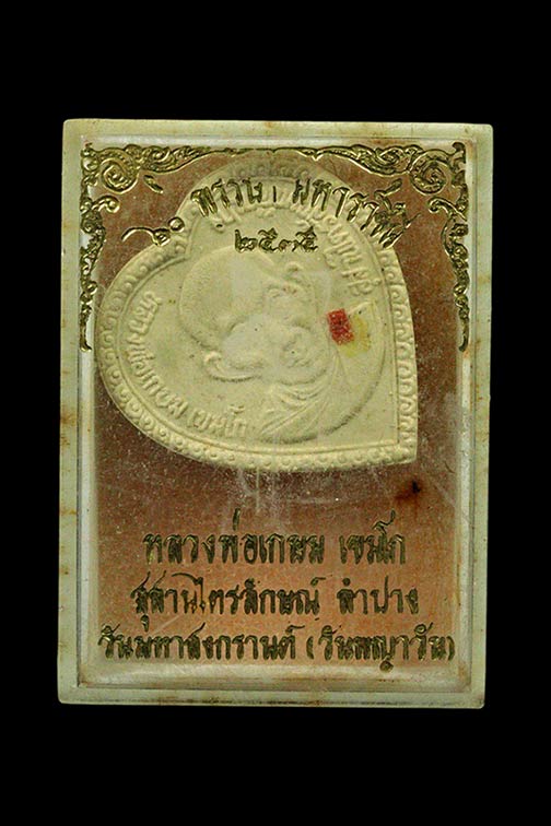 ชื่อพระเครื่อง พระผงรูปหัวใจ หลวงพ่อเกษม เขมโก ลำปาง ปี 2535
