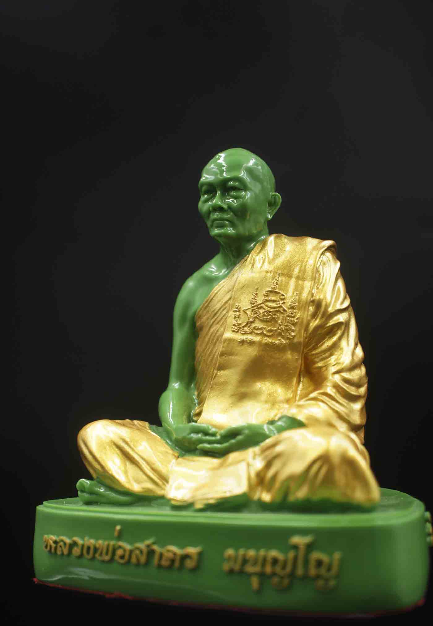 พระบูชา รูปหล่อ หลวงพ่อสาคร ( ย้อนยุค ) เนื้อเรซิ่นเขียว จีวรทอง ปี 2566 ขนาดหน้าตัก 3 นิ้ว สร้าง 1499 องค์ หมายเลข 3 หลัก ** สวย **740** ( หลวงพี่ภุชงค์ ศฺิษย์หลวงพ่อสาคร ปลุกเสก วัดหนองกรับ ) ขนาดความสูง 4.8 นิ้ว กว้างจากฐาน 4 นิ้ว ใต้ฐาน ฝังหลอดมวลสาร แผ่นโค๊ตเงิน ตอกศาลา* |