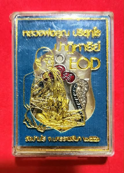 พระสวย.. เหรียญหลวงพ่อคูณ EOD เสมาเนื้ออัลปาก้าหน้ากากปลอกลูกปืนลงยา NO.1235 พร้อมกล่องเดิม