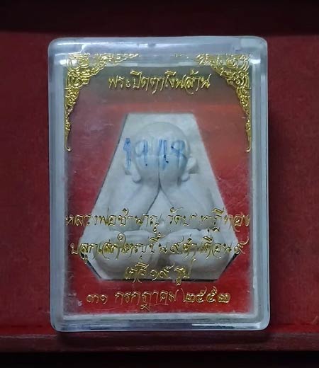 พระปิดตาเงินล้าน หลวงพ่อชำนาญ วัดบางกุฏีทอง จ.ปทุมธานี ปี 52 ฝังตะกรุดเงิน 1 ดอก พร้อมกล่องเดิม..เคาะเดียว |