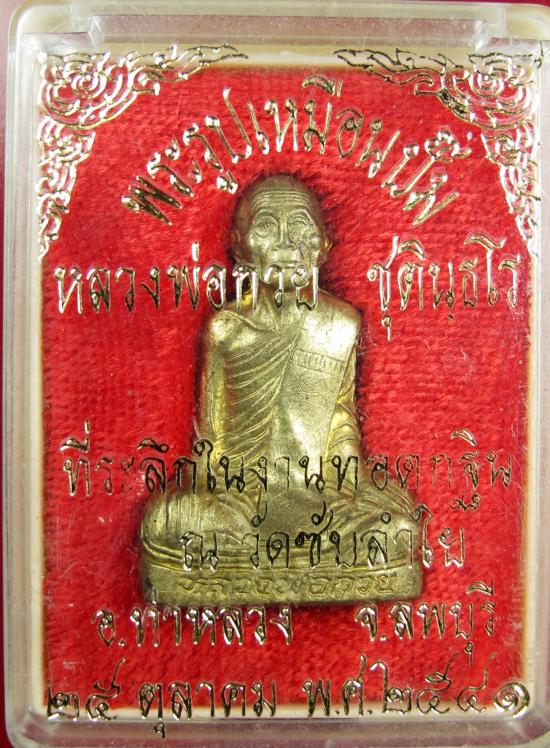 รายละเอียด รูปเหมือนปั๊มหลวงพ่อกวย หลวงปู่หมุนปลุกเสก ปี๒๕๔๑ สภาพสวยจารยันต์เต็มองค์พร้อมกล่องเดิมจากวัด....
