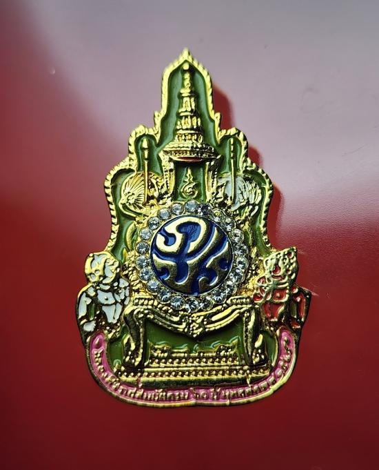 ด้านหน้า - เป็นรูปตราสัญลักษณ์งานฉลองสิริราชสมบัติครบ ๖๐ ปี ประดับด้วยคริสตัลของ "ชวารอฟสกี"
