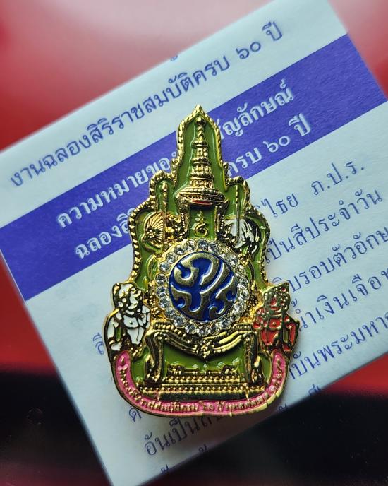 เข็มกลัด เข็มที่ระลึก ฉลองสิริราชสมบัติครบ 60ปี 2549 จัดทำโดยสำนักงานปลัดสำนักนายกรัฐมนตรี (สปน.) พร้อมกล่องและใบเซอร์ เคาะเดียวเบาๆต่ำจองครับ
