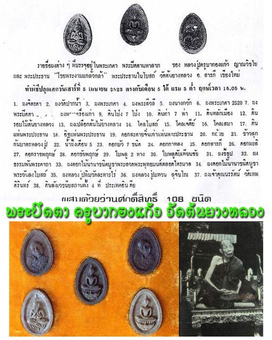 พระผงกลีบบัว พิมพ์พระปิดตา เนื้อว่าน 108 ครูบากองแก้ว วัดต้นยางหลวง จ.เชียงใหม่ ปี 2523
