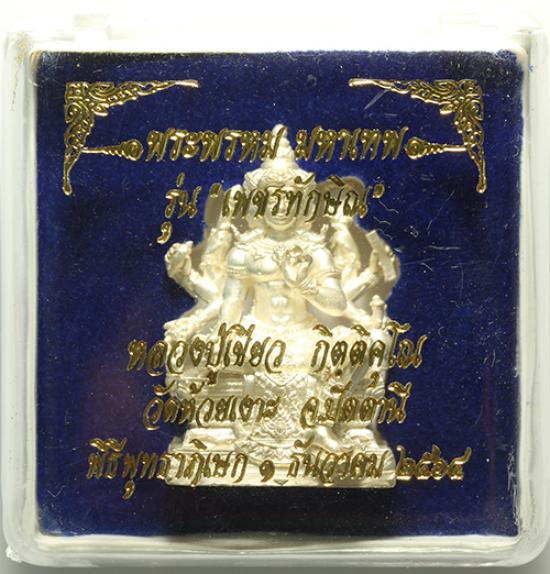 ลอยองค์หล่อพระพรหม รุ่นแรก หลวงปู่เขียว วัดห้วยเงาะ จ.ปัตตานี รุ่น เพชรทักษิณ เนื้อกะไหล่เงิน กรรมการ ใต้ฐาน บรรจุมวลสารศักดิ์มากมาย สวยมาก