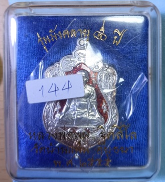 เหรียญเสมา ราคาจอง 2,800 บาทรุ่น "มังคลายุ ๘๐ ปี หลวงพ่อพูน วัดบ้านแพน จ.อยุธยา เนื้อเงินฉลุลงยาแดง ผิวกระจก (ตอกโค๊ต+ เลขสวย 144 ) รายการที่ 13 กล่องเดิม