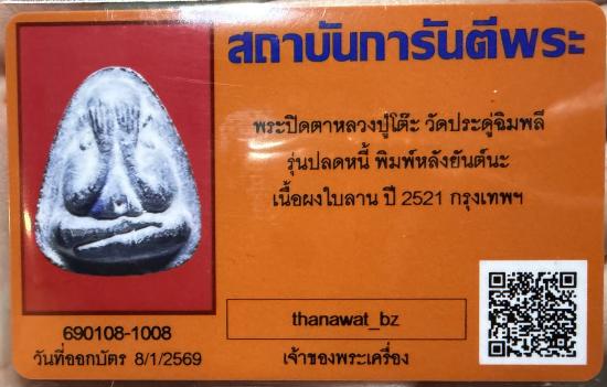 พระปิดตา ปลดหนี้ หลังยันต์นะ หลวงปู่โต๊ะวัดประดู่ฉิมพลี พร้อมบัตร