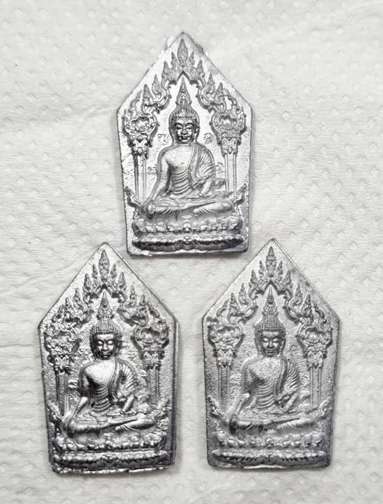 พระขุนเเผน แรงครู พลิกชีวิต พระอาจารย์แจ้ วัดน้อมประชาสรรค์ เหรียญหล่อตะกั่วมหายันต์ 3องค์ ไม่มีกล่อง (H) |