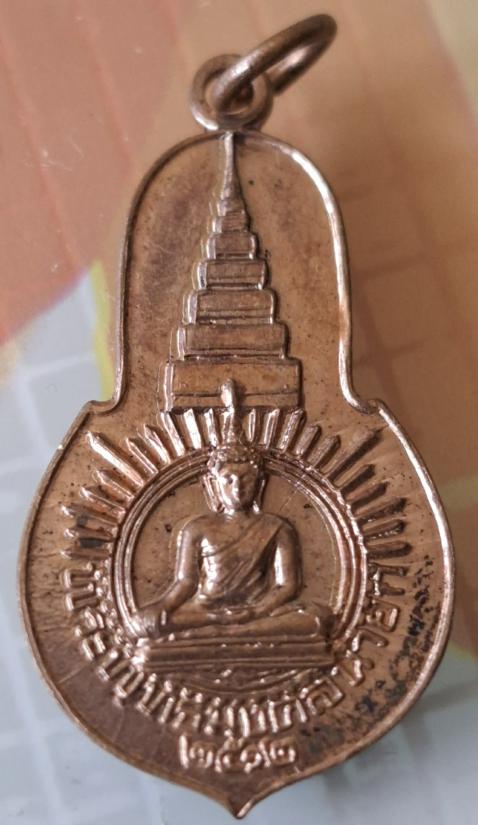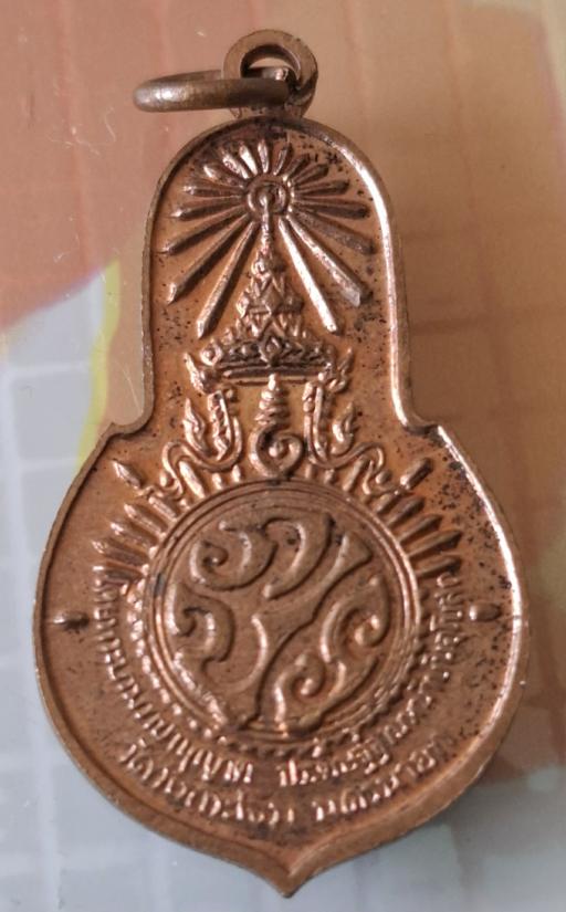 มีลักษณะเป็นเหรียญทรงหยดน้ำ ด้านหน้าเป็นรูปพระพุทธรูปนั่งปางสมาธิ มีซุ้มเรือนแก้วและฉัตร 7 ชั้น ด้านหลังมีตรา ภปร.