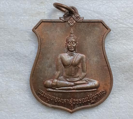 เหรียญอาร์มพระพุทธมหาสุวรรณปฎิมากร (หลวงพ่อทองคำ) วัดไตรมิตร หลังตรา ภปร. เนื้อทองแดงผิวไฟ ปี 2542 |