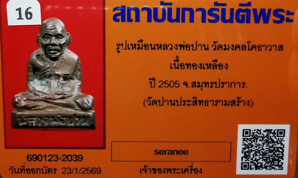 รูปเหมือนหลวงพ่อปาน วัดมงคลโคธาวาส เนื้อทองเหลือง ปี2505 จ.สมุทรปราการ(วัดปานประสิทธารามสร้าง) + บัตรG-pra สภาพเดิมค่ะ สภาพตามรูปทุกประการค่ะ